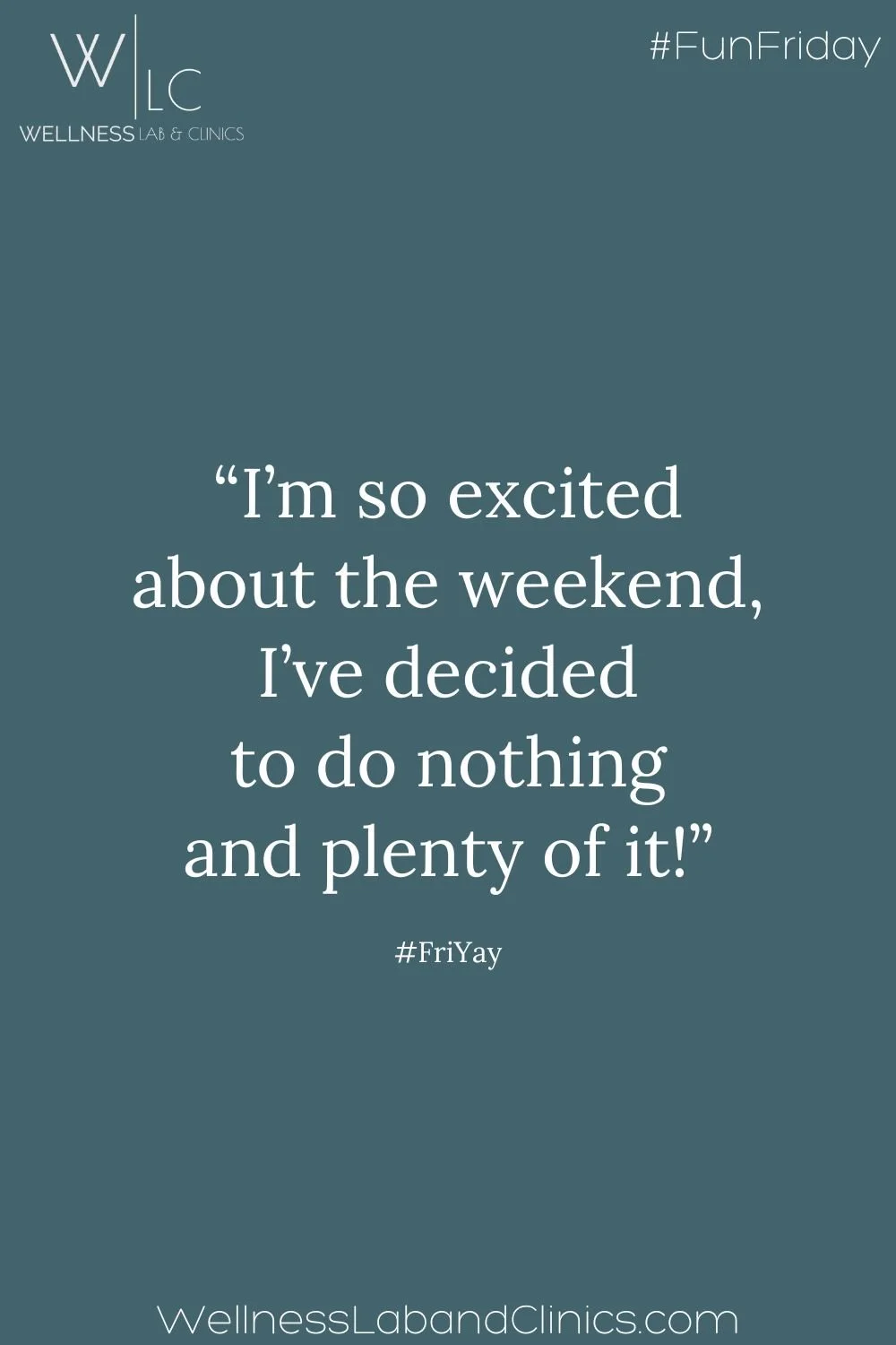 Image: Blue background with this quote: “I’m so excited about the weekend, I’ve decided to do nothing and plenty of it!” WellnessLabAndClinics.com