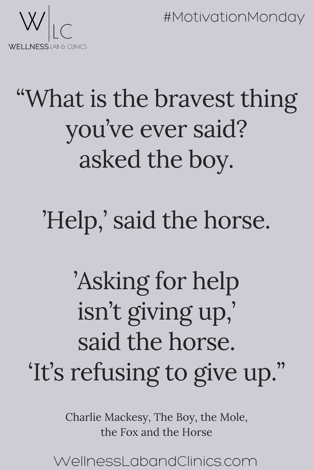 Image: Orange background with a quote from Charlie Mackesy, The Boy, the Mole, the Fox and the Horse: “Do you have any other advice?” asked the boy.” Don’t measure how valuable you are by the way you are treated,” said the horse.” WellnessLabAndClinics.com