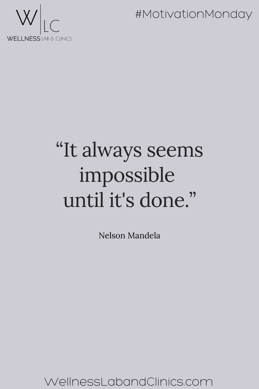 Image: Soft purple background with this quote from Nelson Mandela: "It always seems impossible until it's done." WellnessLabAndClinics.com