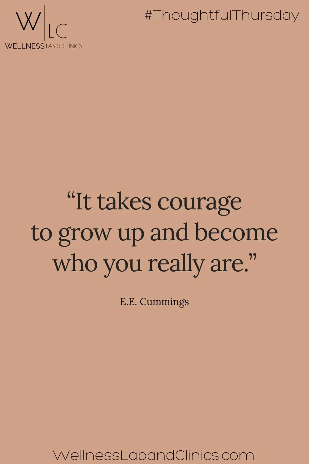 Image: Orange background with a quote by E.E. Cummings: “It takes courage to grow up and become who you really are.” WellnessLabAndClinics.com