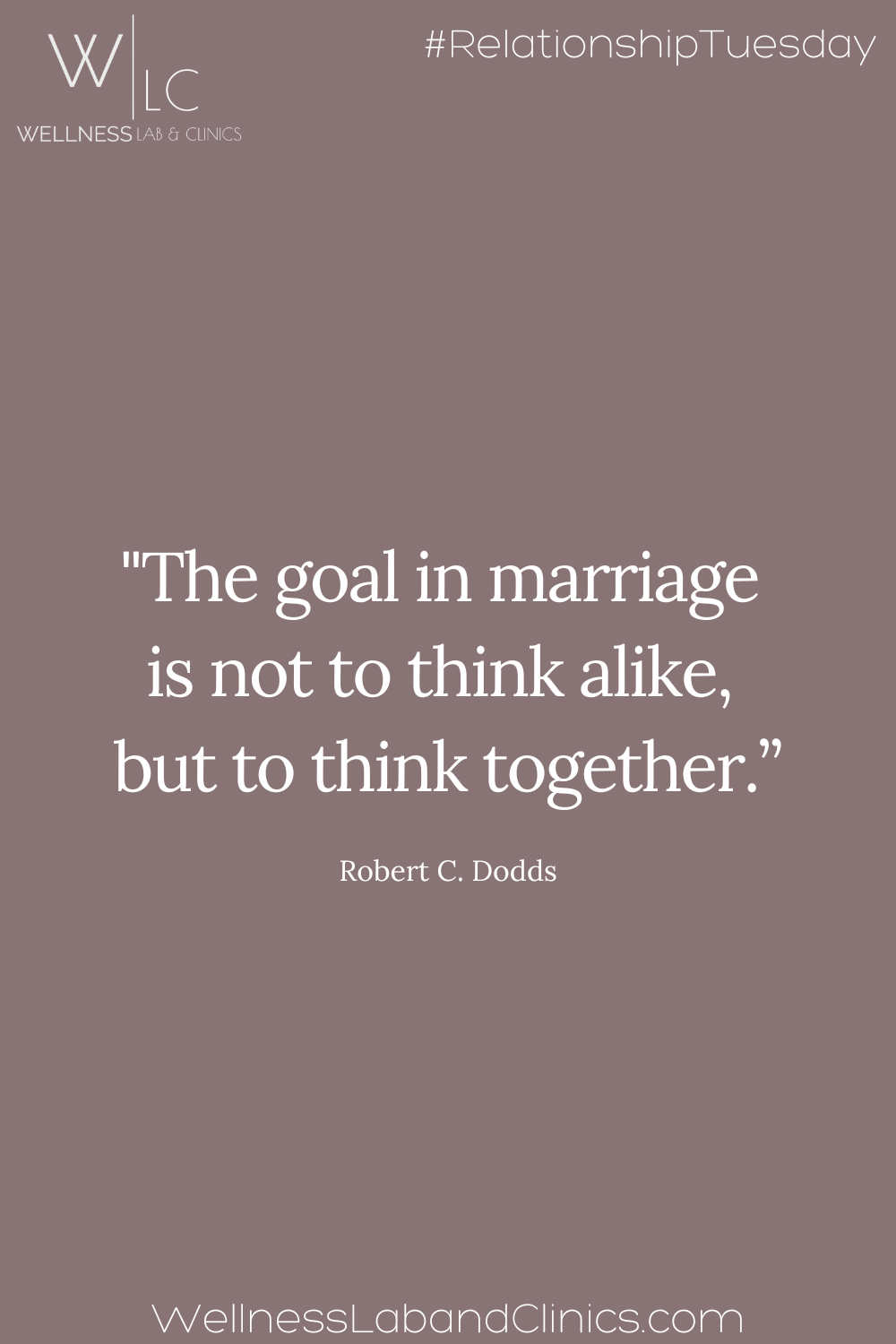 Image: Plum background with this quote from Robert C. Dodds: "The goal in marriage
